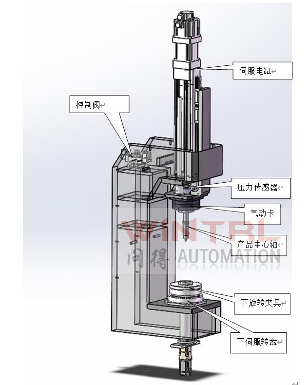 压机位置精度2丝,垂直度2丝,同轴度3丝,可以做到精确压装。底部伺服电机旋转,可精确到3弧分。